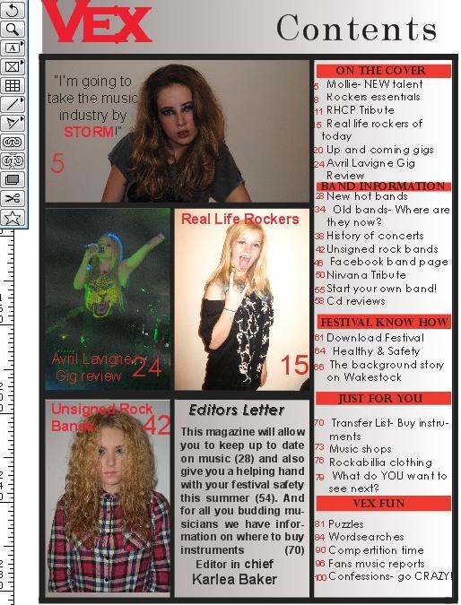 Contents page: The audience said they were clear, good shots and creative clear images and that they too like the front cover also fit the genre.